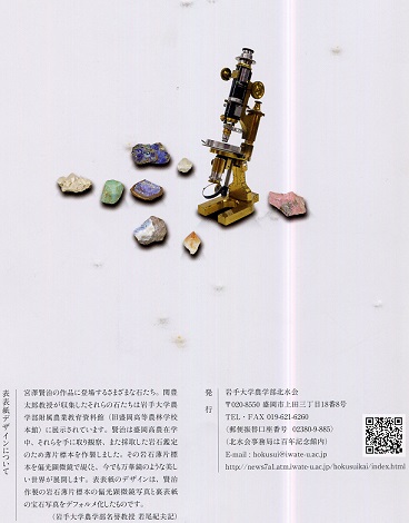 | *-*-*-*-*-*-*-*-*-*-*-*-*-*-*-*-* *「発行図書紹介」 『同窓生が語る宮澤賢治』 ~盛岡高等農林学校と宮澤賢治 ー120年のタイムスリップ~ 好評発売中!! ![]() 当会常任理事の若尾紀夫岩手大学名誉教授が、平成 18(2006)年から15年間、年2回発行の「北水会報」に掲載し た内容を再編集し、さらに同級生の6名の賢治に寄せる思い を追録したものです。 賢治と同じ農芸化学科の先輩・後輩という絆の相乗効果も 大いに作用し、そのうえ類まれなる詳細な資料調査や綿密 な分析、執筆の継続性が発揮された、賢治研究家のみなら ず、賢治ファン垂涎の的になること請け合いの出来上がりと なっています。 平成3年7月末から、盛岡市内主要書店(さわや書店、東 山堂、ジュンク堂、岩手大学生協)と北水会本部のみで限 定販売中(税込み2,970円)です。 **ご希望の方は、北水会事務局まで ご連絡ください。** ![]() *-*-*-*-*-*-*-*-*-*-*-*-*-*-*-*-*