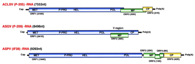 リンゴ高接病の病原ウイルスのゲノム構造 |